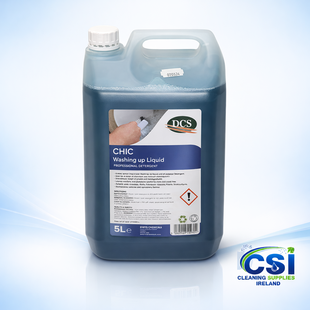 Cut through stubborn grease and dried-on food with Chic Professional, a high-performance 5L washing up liquid designed for the catering industry. This concentrated formula offers exceptional economy and cleaning power, making it a staple for busy commercial kitchens, restaurants, and canteens across Ireland.