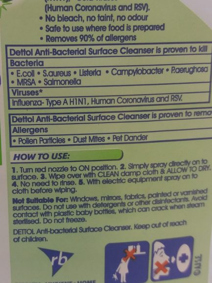 Dettol Virus Spray.