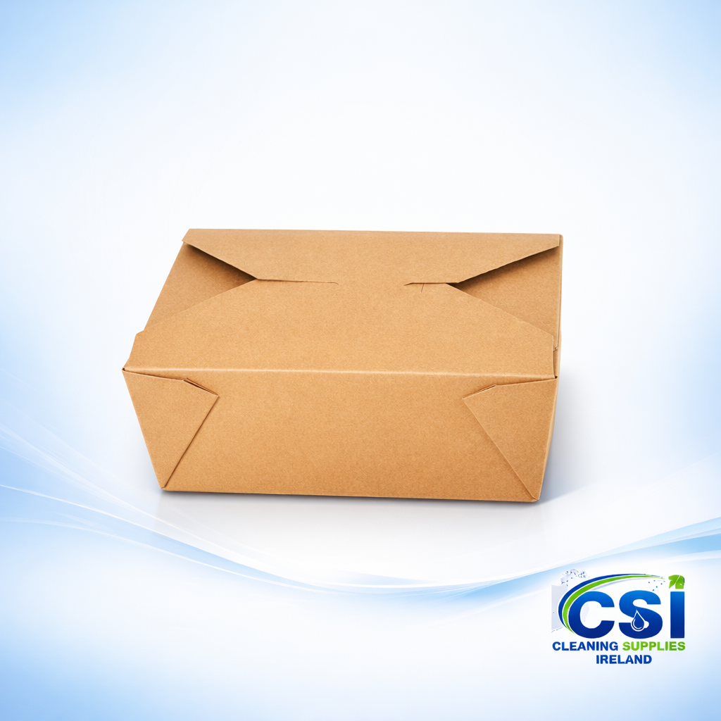 Elevate your takeaway presentation with our kraft takeaway food boxes Ireland range. The No. 8 brown kraft box is the industry standard for generous portions of pasta, noodles, salads, and side orders. Designed for the modern Irish catering market, these boxes combine a rustic, eco-friendly aesthetic with high-performance functionality.