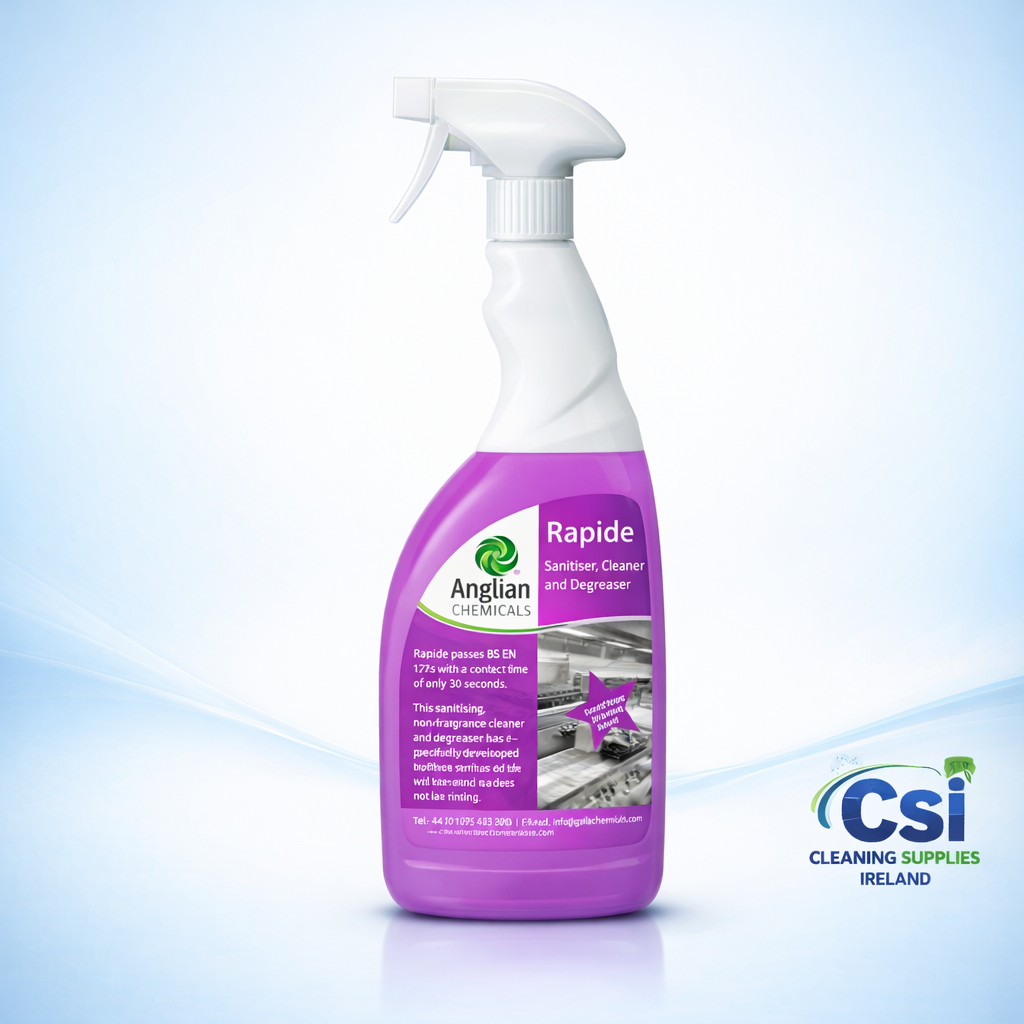 Efficiency is at the core of the RAPIDE formula. With a contact time of only $$30text{ seconds}$$, it works significantly faster than standard disinfectants, allowing for rapid sanitisation of high-touch areas. Because it is non-perfumed, non-tainting, and rinse-free, it is the premier choice for “School Safe” environments and food preparation areas where hygiene and safety are non-negotiable.