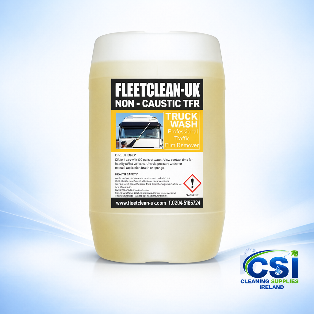 Keep your commercial fleet spotless with Fleet Care TFR, a heavy-duty traffic film remover designed for professional use. This concentrated formula cuts through tough road grime, oil, and grease, making it the ideal truck wash detergent for haulage companies, car valeters, and fleet operators.