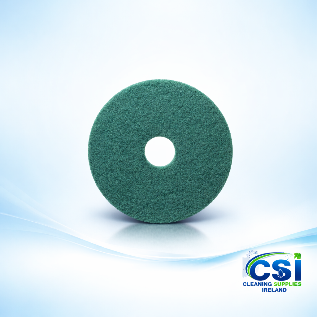 The “Max” construction features a tough, open-web fibre structure that resists clogging and maintains consistent performance throughout the pad’s life. These green floor scrubbing pads are the industry standard for removing deep scuff marks, spilled grease, and heavy dirt buildup from hard floors like vinyl, terrazzo, and concrete.