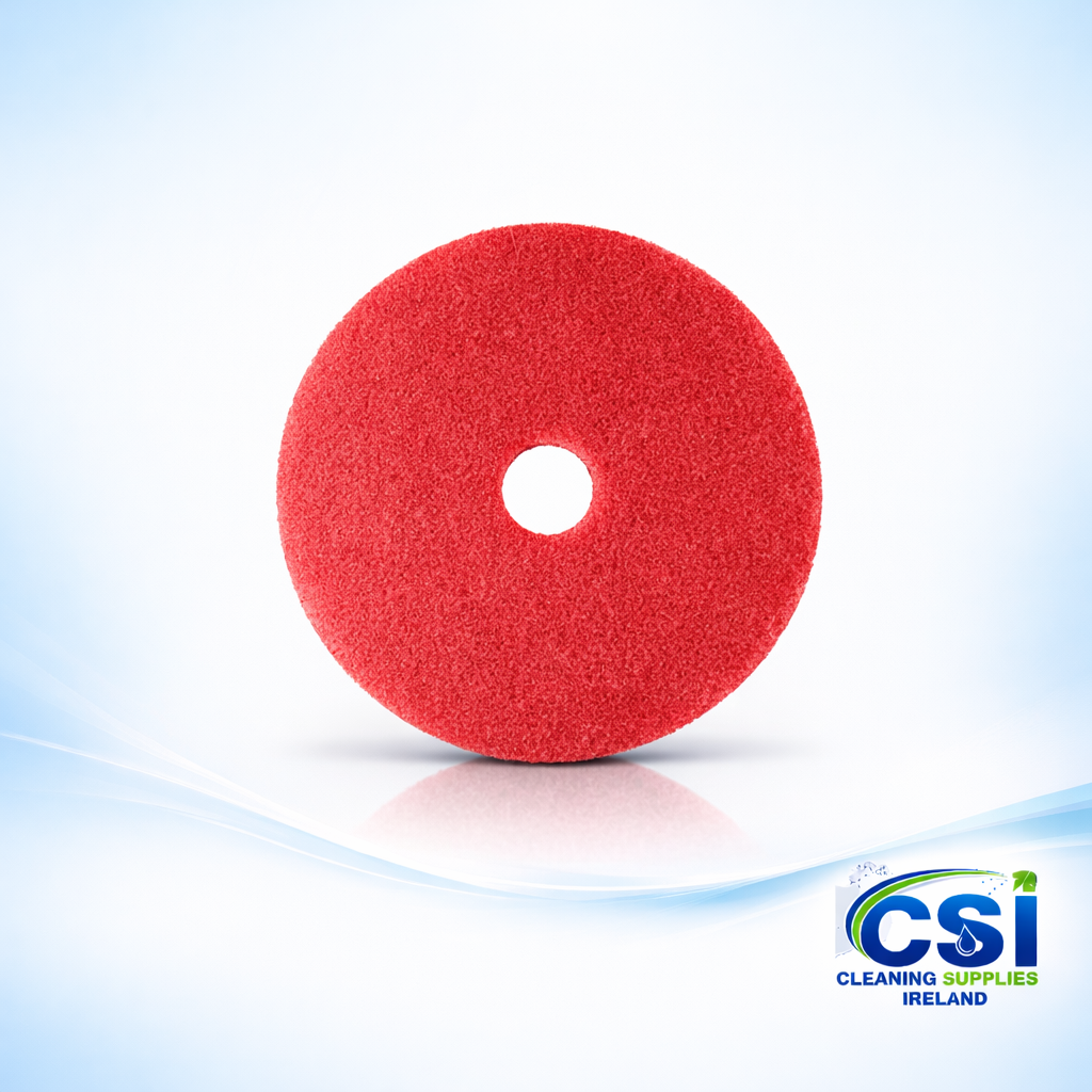 Maintain clean, shiny floors every day with professional 15 inch red floor pads. Designed for spray buffing and light cleaning, these pads are the ideal “daily driver” for commercial floor care. They effectively remove light scuff marks and black heel marks without being aggressive enough to strip the floor finish.