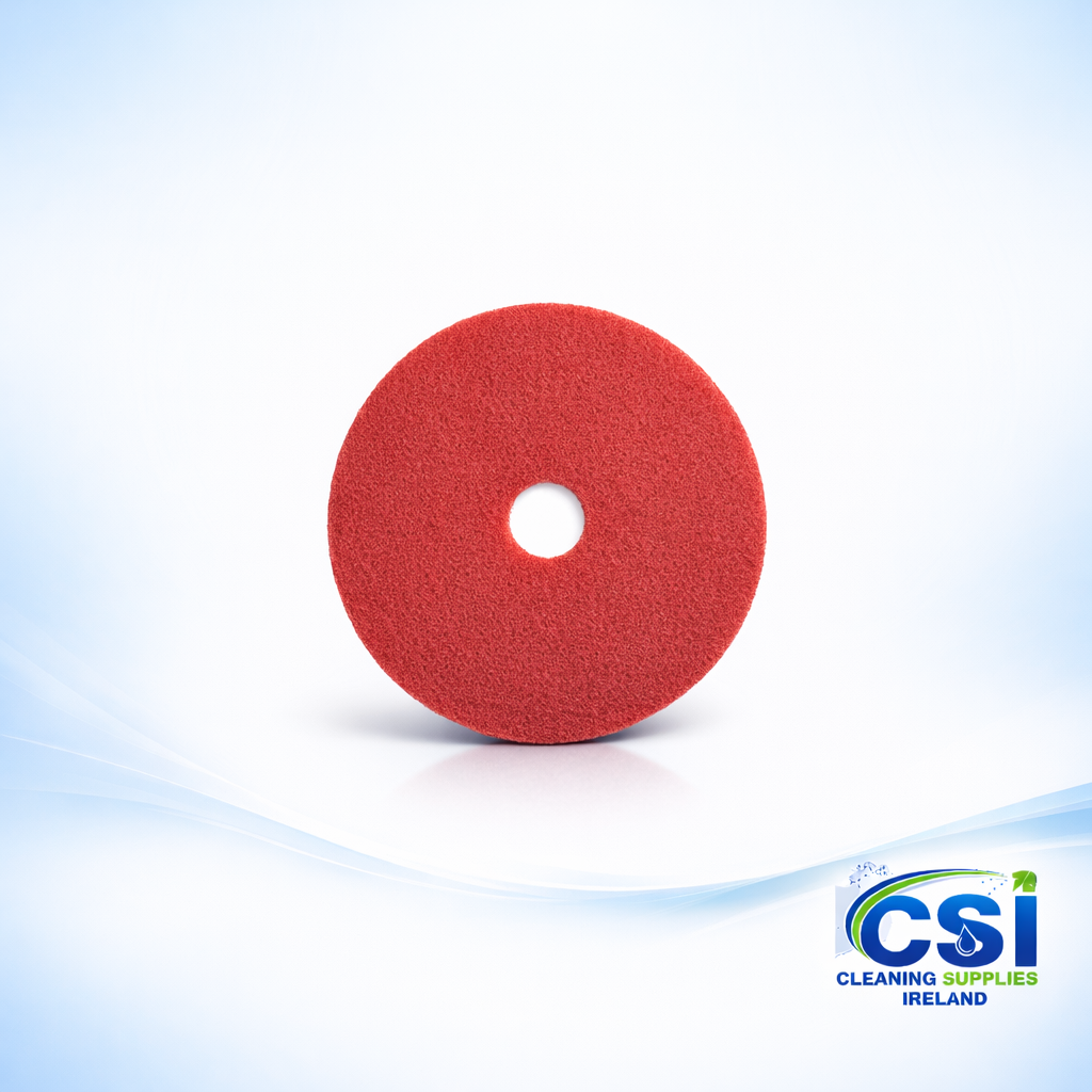 Perfect for use on vinyl, linoleum, and sealed wood, the red buffing pads feature an open-web structure that prevents clogging during spray cleaning. They are widely used on 20 inch scrubber dryers for daily maintenance in supermarkets, schools, and airports.