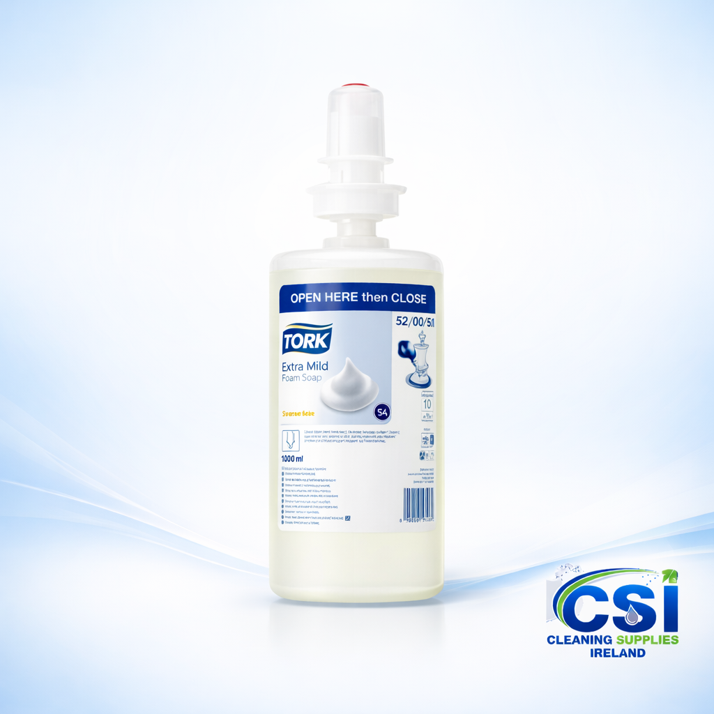 Our Tork S1 soap refills are specifically formulated for environments where hygiene is critical and sensitivities are a concern. This “Extra Hygiene” liquid soap is completely free from perfumes and colours, significantly reducing the risk of allergic reactions or skin irritation. In high-stakes areas like hospital wards, dental clinics, and professional kitchens across Ireland, this soap provides a deep clean while remaining gentle on the skin.
